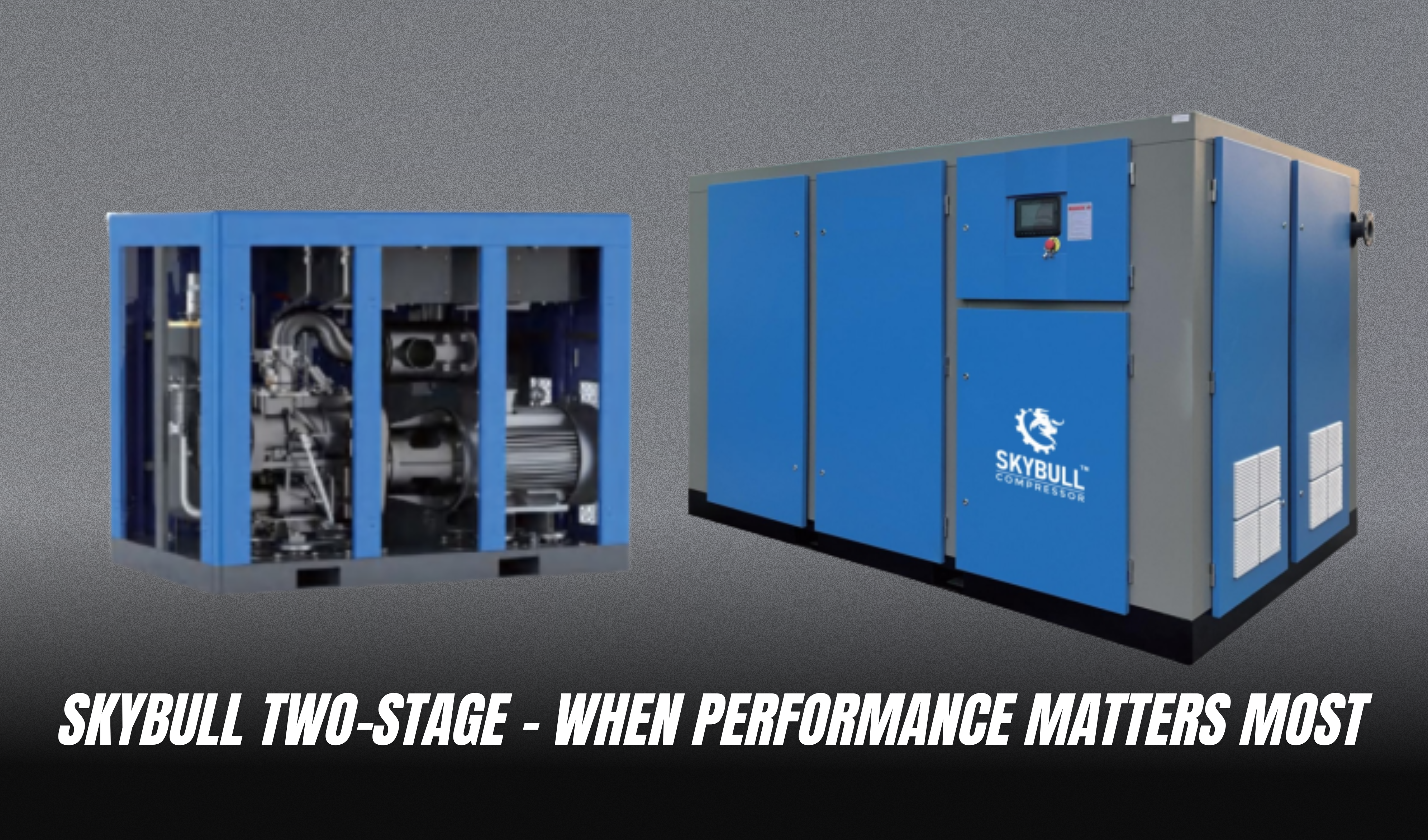 Skybull’s Two-Stage Screw Air Compressor is designed for industries that need higher pressure and more air output — without increasing energy consumption. It compresses air in two steps, which improves efficiency, reduces heat, and increases overall performance.